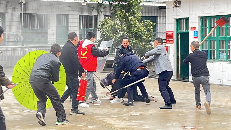 本网讯 11月22日,奎溪镇完小联合奎溪镇应急办、奎溪镇派出所、邀请学生家长代表共同开展反恐防暴应急演练活动。 演练开始前,校长陈青海、政教主任易专携护校队结合学校实际情况和学生年龄特点,商讨并制订了详细的反恐防暴应急演练活动方案,并组织召开会议,提升安全防范能力。同时,通过会议让全体教职工熟悉演练流程,为反恐防暴演练做好充分准备,确保演练过程顺利有序。 安全演练开始后,两名“歹徒”从大门处声称要找某某学生,安保人员进行安检时发现异常,该人员拒绝配合并强行闯入校园内,企图进行袭击。安保员立即启动一键报警系统,通知全校师生及属地派出所,值班保安员、应急办志愿者及在场教职工迅速拿起防暴工具奋力进行抵抗,与“歹徒”周旋。与此同时,派出所迅速出警,并与学校保卫组人员合力在短短三分钟内就制服了“歹徒”,夺下“凶器”。 回到教室后,各班教师及时检查学生的身体状况和心理承受能力,以及学生在逃生中的受伤情况。安抚学生情绪,对学生进行心理疏导。让学生明白此次演练的目的和意义,使学生认识到暴力恐怖事件的潜在危险,进一步增强学生的自我保护意识。 据悉,演练活动前,该校已组织各班开展“反恐防暴”安全教育活动。通过观看视频、演示等方式,讨论“坏人来了怎么办?”同时在校园内进行反恐防暴宣传,让学生掌握正确的应对方法及措施,学习正确的自我保护方法。 初审初校:卢雪萍 复审复校:易 专 终审终校:陈青海