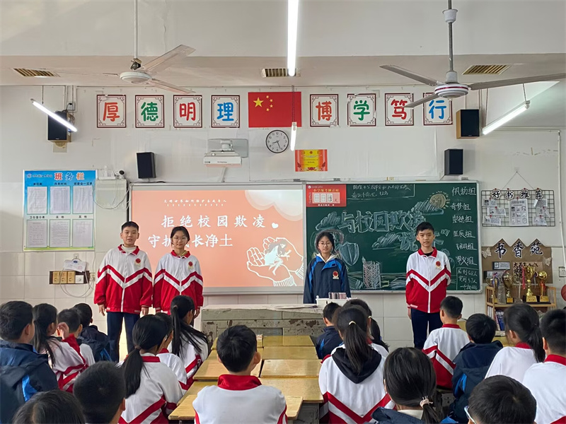 本网讯 11月13日,安化县江英学校小学部开展了“预防校园欺凌,共建和谐校园”安全教育活动。 此次活动通过主题班会、安全教育课、国旗下讲话和版面墙报等多种形式向学生讲述了什么是校园欺凌,让学生反思自己身边是否存在校园欺凌的现象,并结合具体事例阐述了为什么要治理校园欺凌。 在班会课上,各班班主任通过PPT课件、文字展示和讲解具体案例,向同学们讲述了“什么是欺凌”以及“怎样预防欺凌”,引导学生要敢于向校园暴力说“不”,学会正确处理同学之间的关系。遇到欺凌时要学会保护自己,及时报告老师和家长,妥善处理矛盾。随后,各班主任还结合一些典型校园欺凌案例的讲解,以案说法,让同学们进一步认识了校园欺凌的危害性及应对方法。 最后,各班主任进一步强调了构建和谐校园的重要性,希望同学之间友善相处,坚决反对校园欺凌事件的发生。同学之间一旦发生矛盾、纠纷、摩擦,应通过正常程序和法律途径来维护自身的权利。 初审初校:李 峰 复审复校:夏 媛 终审终校:刘圣彦