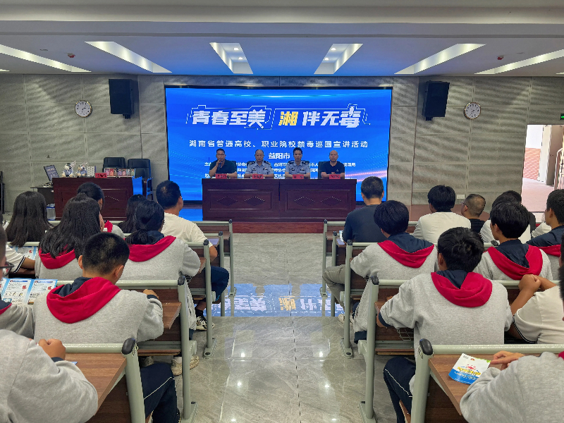 本网讯 9月25日,湖南省普通高校、职业院校禁毒巡回宣讲活动在安化县职业中专学校(安化黑茶学校)笃学楼负二楼会议室举行,本次宣讲活动由益阳市禁毒委员会办公室、益阳市教育局、益阳市人力资源和社会保障局、共青团益阳市委、益阳市禁毒协会、益阳市强制隔离戒毒所等多家单位联合主办。益阳市强制隔离戒毒所政委陈民、益阳市强制隔离戒毒所教育科科长莫灿、安化县社会化禁毒办主任李战胜、安化县教育局禁毒专干方怡富出席活动,宣讲由益阳市强制隔离戒毒所“聚合力”禁毒宣传志愿者团队成员伍远清主讲,高一年级400余名师生现场聆听。 伍远清通过视频资料、PPT讲授的形式,从“什么是毒品”“毒品的危害”“吸毒案例分析”“如何拒毒防毒”“禁毒法律知识”五个方面,详细介绍了毒品的种类、危害,他重点阐述了不法分子将毒品替代品依托咪酯放入电子烟烟油中的危害,提醒学生警惕、盲目追风吸食成瘾的风险。他倡议大家对毒品要有清醒的认识,不结交有吸毒、贩毒行为人员,不出入治安复杂的场所,珍爱生命,远离毒品。最后,他带领现场的师生,共同宣读誓言,喊出禁毒口号,将禁毒宣讲活动推向了高潮。 活动结束,学生们在禁毒宣传志愿者的引导下,参观了毒品模型和禁毒展板,让学生们对毒品的种类、危害有了更深刻的认识,有效提升了学生们禁毒防毒意识。(通讯员 蒋碧柳) 初审初校:蒋碧柳 复审复校:刘 瑶 终审终校:陈爱辉