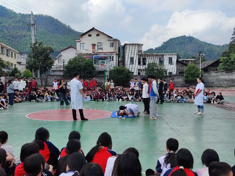 滔溪镇中学组织防溺水应急演练 本网讯 6月6日,滔溪镇中学组织开展学生防溺水应急演练活动,该活动由滔溪镇卫生院和滔溪镇中学联合进行。 演练开始前,卫生院院长李春华讲解了演练注意事项,并邀请4位学生上台演练。演练活动分为两个环节:首先由指定学生模拟溺水人员,在“水中”大声呼救,几位同伴见状,不敢轻易“下水”施救,立即向周围呼救,并用一根长木棍把落水者拉上了岸,使其脱离危险。学生表演后,医务人员演练如何下水从溺水者身后将其拖离,并示范操作进行“心肺复苏”培训,从判断意识、呼救帮助、矫正体位、胸外按压、开放气道、人工呼吸等方面进行了专业讲解、演示。 该校校长表示,希望通过本次演练活动切实提高学生安全防范意识和自救自护能力,确保校园平安、稳定。 初审初校:胡澜芝 复审复校:刘林鹏 终审终校:李靖
