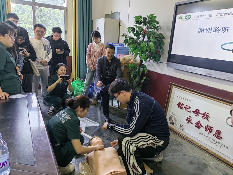 本网讯 5月30日,安化县中医院组织专业技术人员来到奎溪镇中学,对该镇中心学校教师进行了现场急救知识技能培训与考核,对培训合格者颁发了培训结业证书。 县中医院专业技术人员王伶兰、谌国琴、罗庭通过课件展示解说和现场模拟示范,分别向参加培训的教师讲解了什么是现场急救和开展现场急救的意义、什么是现场急救的第一现场、第一时间、第一救护人、如何进行现场心肺复苏急救、如何进行现场创伤急救、如何进行气道异物现场急救等方面的知识和技能。 中午和下午两节课时间,对参加培训的教师进行了网上理论考试和现场操作考核,对成绩合格的学员颁发了现场急救培训结业证书。