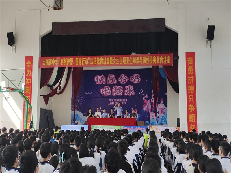 本网讯 5月16日,大福镇政府、司法所、派出所等部门联合在大福镇中学风雨球场开展“利剑护蕾·雷霆行动”法治教育专题讲座暨女生生理卫生知识与防性侵害讲座,全体学生参加。