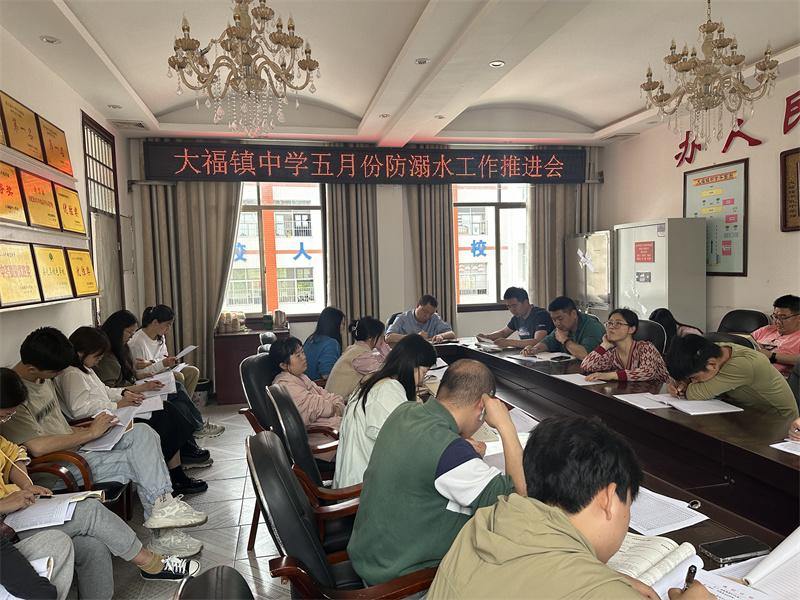 本网讯 5月8日,大福镇中学在小会议室召开防溺水工作推进会,会议由政教处主任蒋益葵主持,全体班主任参加。