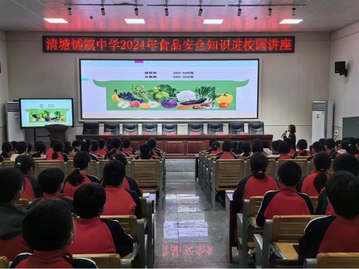 本网讯 4月12日,清塘铺镇政府人大主席蒋群高带领镇食安办、市监所,联合县市监局食品安全宣讲员罗柔,在清塘铺镇中心学校工会主席谭宏光,清塘铺镇中学校长刘丽莉的陪同下,在清塘铺镇中学举行了以“关注身边的食品安全”为主题的食品安全讲座。 活动现场,宣讲员通过生动的讲解和案例分享,向学生们传递了食品安全的重要性。宣讲内容涵盖了食品安全基础知识、校园食品安全现状与挑战、健康饮食与营养知识等多个方面,旨在帮助学生们全面了解食品安全知识,培养健康饮食习惯。活动现场气氛热烈,学生们认真听讲、积极参与互动环节。 通过问答、讨论等形式,学生们对食品安全知识有了更深入的了解,纷纷表示要将所学知识运用到日常生活中,共同维护校园食品安全。