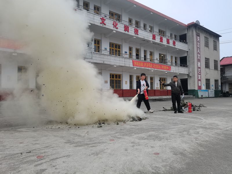 本网讯 4月10日大福镇完小举行消防应急疏散演练活动。 上午10时许,随着警笛声响起,在各班老师的带领下,学生用手捂住口鼻,俯身前行,沿着预定的疏散路线,快速有序地撤离。仅用时125秒,全校1800名师生就撤离到了安全地带。 政教干事邹敏从“提、拔、握、压”四个步骤向全校师生介绍了干粉灭火器操作流程,并在现场进行了演示。同时请了一位学生进行了操作,确保了意外发生时能第一时间保护师生的安全。 政教处主任黄剑从火灾发生的原因、学校如何注意防火、在家中如何注意防火、发生火灾如何报警、遇到火灾怎样紧急应对等五个方面进行了安全知识讲座。
