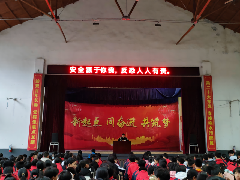 本网讯 3月25日,田庄乡中学开展反恐防范安全知识讲座。 讲座由田庄乡派出所所长、田庄乡中学法治副校长高睿主讲。 “假如面临恐怖袭击,我们该怎么做?”讲座开始前,高睿通过现场知识问答的方式与学生们互动。随后,他结合实际案例,用通俗易懂、趣味生动的语言为学生们讲解了常见恐怖活动、常见恐怖袭击手段以及如何识别、处理、举报恐怖音视频等知识,进行了宣传普及,切实提高了广大学生的反恐防范意识与自我防护能力。学生们认真听讲,积极互动发言,将自己所了解的应对恐怖事件的常识与老师和同学们进行分享。 活动后,同学们纷纷表示,通过此次讲座知道了如何分辨恐怖分子,如何应对恐怖活动,回去后还会将这次讲座的内容都讲给自己的父母、家人和朋友们,让大家提高反恐意识。