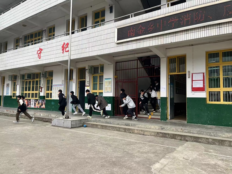 本网讯 “抓住他!抓住他!”随着安保人员的拦截,一名暴恐分子被控制。原来,这是3月20日,南金乡中学组织开展反恐、消防、应急疏散综合演练。 课间操时间,一名暴恐分子企图以找人为名进入学校,被门卫拦截。暴恐分子见状掏出凶器威胁门卫并乘机进入校园区内,一名保安迅速拉响一键报警系统并向校长汇报,校领导收到消息后,正式启动反恐防暴应急预案。全校进入应急状态,全体学生,关好门窗,迅速躲到书桌下避险。三名安保人员拿器械阻挡歹徒,并将其制服,随后移送公安机关。待危险解除后班主任老师对学生进行心理疏导及安全教育。 随着消防警报铃声响起,各班学生在班主任的指挥下快速地撤离到安全区域,科任老师协助班主任,确保全部学生安全撤离。同学们用手捂住口鼻,低头弯腰,有序地离开教室,整个过程井然有序。到达集结点后,各班级立即清点人数,保证所有学生安全撤出。全程用时49秒,政教主任刘婉对此次应急疏散感到满意,为全校师生讲解灭火器的使用方法,并实战演练,使学生们亲身体会。 该校校长夏晶对此次综合演练活动进行总结,强调通过演练,让同学们学会在非正常情况下逃生自救,熟悉逃生疏散路线,提高自救防护能力,很有必要,很有意义。
