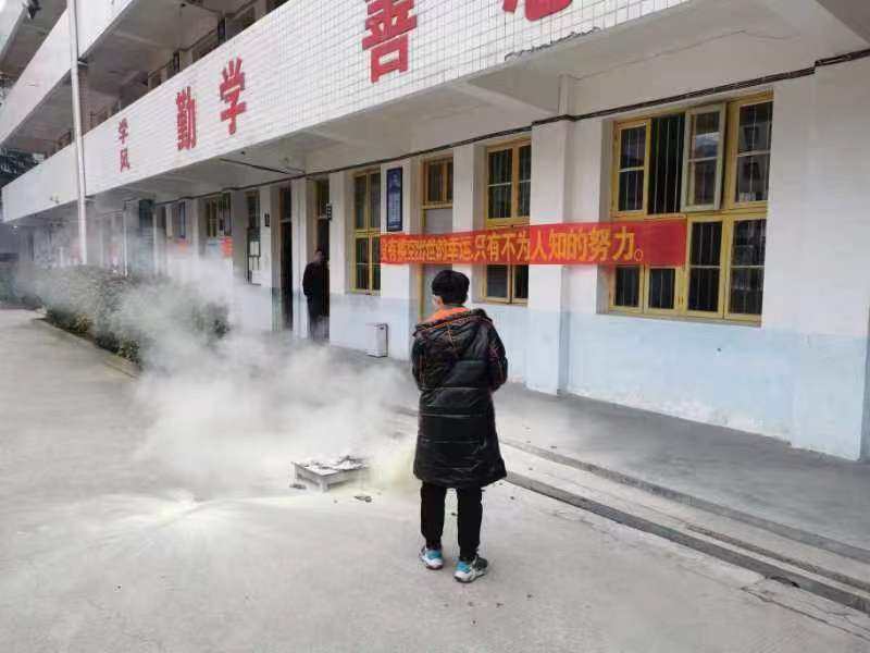 本网讯 3月6日,大福镇东山中学进行了消防安全疏散演练和灭火活动。 上午8点,一阵尖锐的警报声响起,消防安全领导小组成员迅速组织全校师生疏散逃生,中层以上领导负责在教学楼各个楼梯口指挥疏散。班级里正在上课的老师立即告知疏散地点,指导学生迅速掏出手绢,用水浸湿后掩住口鼻,俯首低行,从前、后门有秩序地跑出教室,从指定楼梯口奔向操场。班主任及任课教师紧跟学生身后,在楼梯口组织本班学生有秩序地逃生。各班按指定路线快速进入操场集合,并马上清点人数,立即上报指挥员刘志武,指挥员再把全校疏散情况上报给总指挥高庆华。 在教学楼前进行了灭火演练。安全专干严振宇解说灭火器的使用方法,现场演示灭火技术,并现场抽选几名学生上台操作灭火器灭火。