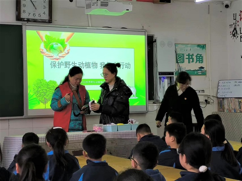本网讯 3月3日,国际野生动植物日,县政协、县林业局和县六步溪国家自然保护区管理处等7个单位的领导和专家联合江英学校小学部在校园内开展以“广泛发动社会力量 ,共同推进物种保护”为主题的宣传活动,以增强中小学生野生动植物保护意识,形成全社会“人人参与,齐心共守”的生态保护氛围。 活动现场,工作人员通过分发宣传手册、野生动植物展板展示、观看宣传视频、进行现场讲座和提问答题等形式,宣传野生动植物保护的法律法规,普及野生动植物保护知识,加强师生互动,设立解疑环节,注重提高学生的参与度。 在野生动植物展示环节,同学们表现出了极大兴趣,纷纷驻足围观,并不时地进行提问:“叔叔,我们这里有这种鸟?”“如果我们碰到了受伤的小动物该怎么办?”工作人员一一答复道:“碰到这种情况,先要联系大人,然后打电话给我们单位,我们单位再把‘它’送到专业的医疗机构进行治疗和救助等到恢复了再把‘它’放生。” 据悉,本次活动共1000多名学生参加,现场解题解疑120多个。江英学校党支部副书记、小学部校长刘艳说:利剑护花蕾,同心向未来,野生动植物保护知识进校园,既增强了我们学生的生态保护意识,也提高了我们学生的生态家园保护能力,为我们学生成为新时代的生态文明建设者打下了基础。
