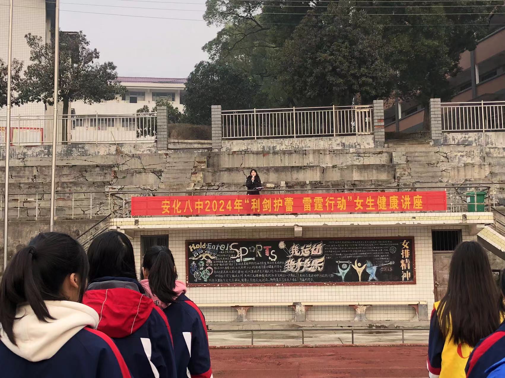 本网讯 3月3日,安化八中召开了2024年“利剑护蕾,雷霆行动”女生健康讲座。讲座由该校团委书记肖媛主讲,七、八、九年级的女生参与了此次讲座。