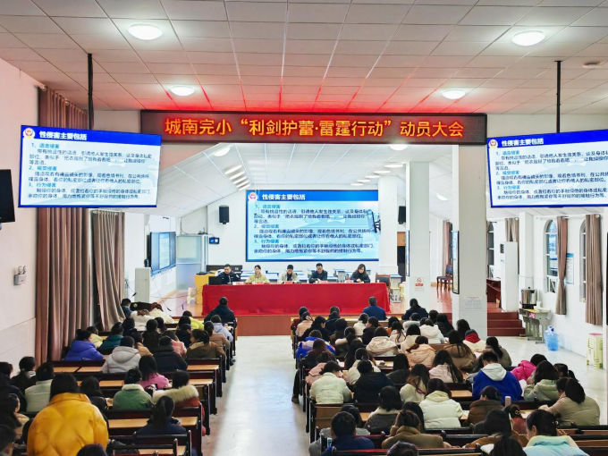 本网讯 1月11日晚,东坪镇城南完小开展“利剑护蕾•雷霆行动”动员大会,全体教职员工参加,会议由副校长谌朝晖主持。 城南派出所副所长、城南完小法治副校长谌重峰,对全体教师进行了道德法治专题讲座,他从什么是性侵害、典型案例、学生该怎样预防性侵害、性侵害的现象及相关法律责任等方面进行阐述。安全专干刘芬带领全体教职员工学习了《安化县教育局系统“利剑护蕾 雷霆行动”实施方案》《侵害未成年人案件强制报告制度》《益阳市教育局预防学生性侵害“十严格、十不准”》等相关文件。最后,校长张密田作了重要指示,坚决守住“校园无性侵、教职工无性侵”的底线,加强师德师风学习,提高法纪意识。 据悉,此项工作,该校已召开专项行政小组会议、班主任会议、男教职员工会议,制定了具体实施方案,各部门分工明确,严格按要求落实。