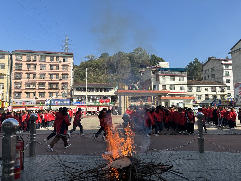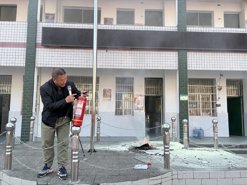 听到警报声,全校师生紧急行动,各楼层负责人火速赶到指定地点,上课学生在任课老师的组织和带领下快速进行疏散,大家用衣袖捂着口鼻,躬着身体,用最短的时间撤离到学校指定的安全地点,整个过程紧张而有序。各班班长向演练总指挥报告各班安全撤离人数。学校政教主任邓永安动手演示,向全体师生普及了灭火器使用时“提、拔、握、压”四个正确的步骤,并就其它几种常用的灭火方法进行了讲解。