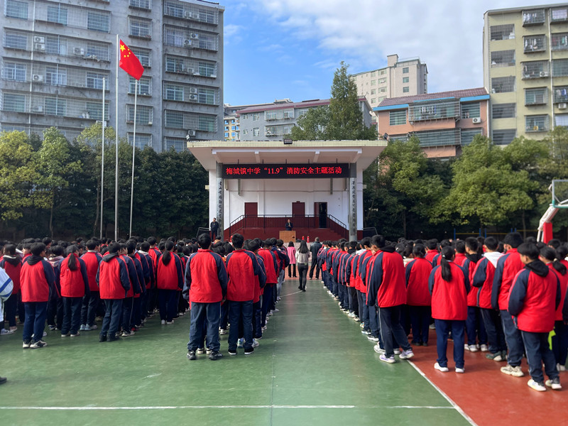 本网讯 11月14日,梅城镇中学开展了消防安全应急疏散演练。 当学校消防警报骤响时,全体人员进入各自岗位进行及时疏散,各楼层负责疏导的老师组织学生沿安全通道、紧急疏散路线快速有序撤离到学校操场。全校师生在规定时间内完成逃生演练,整个过程做到了安全、有序、快速。副校长李德良对师生讲解了如何正确疏散逃生、如何使用灭火器、以及自防自救常识。 校长喻选民对此次消防安全应急疏散演练活动进行了全面的总结,充分肯定了本次演练的成效,要求全校师生员工能多关注消防、学习消防、参与消防,自觉遵守消防法律、法规和学校的各项规章制度,自觉承担起学校防火、灭火工作的责任和义务,把学校消防安全工作做深、做细、做实,及时消除火灾隐患,有效防控火灾发生,确保学校财产和广大师生员工生命和财产安全,全面提升学校防控火灾的能力。