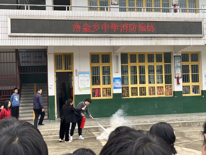 本网讯 11月8日,南金乡中学组织开展反恐、消防、应急疏散综合演练。 课间操时间,一名暴恐分子企图以找人为名进入学校,被门卫拦截。暴恐分子见状掏出凶器威胁门卫并乘机进入校园区内,一名保安迅速拉响一键报警系统并向值周行政汇报,两名保安拿器械阻挡歹徒,并将其制服。校领导收到消息后,正式启动反恐防暴应急预案。全校进入应急状态,全体学生关好门窗,迅速躲到书桌下避险。待危险解除后,班主任老师对学生进行心理疏导及安全教育。 随着消防警报铃声响起,各班学生在班主任的指挥下快速地撤离到安全区域,科任老师协助班主任,确保全班学生安全撤离。同学们用手捂住口鼻,低头弯腰,有序地离开教室,整个过程井然有序。到达集结点后,各班级立即清点人数,保证所有学生安全撤出。全程用时1分10秒,政教主任刘婉对此次应急疏散感到满意,为全校师生讲解灭火器的使用方法,并实战演练,使学生们亲身感受。 该校校长夏晶对此次综合演练活动进行总结。她强调了演练活动的重要意义,指出了演练活动中存在的不足,并希望全体师生以本次演练活动为契机,切实增强反恐、消防安全意识,不断学习安全知识,提高自救能力,共建平安校园。