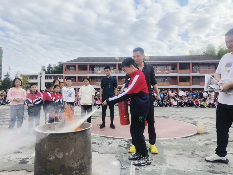 随后,政教主任王荣锦讲解了消防安全知识及灭火器的使用方法,并且指导学生进行了实际操作练习。