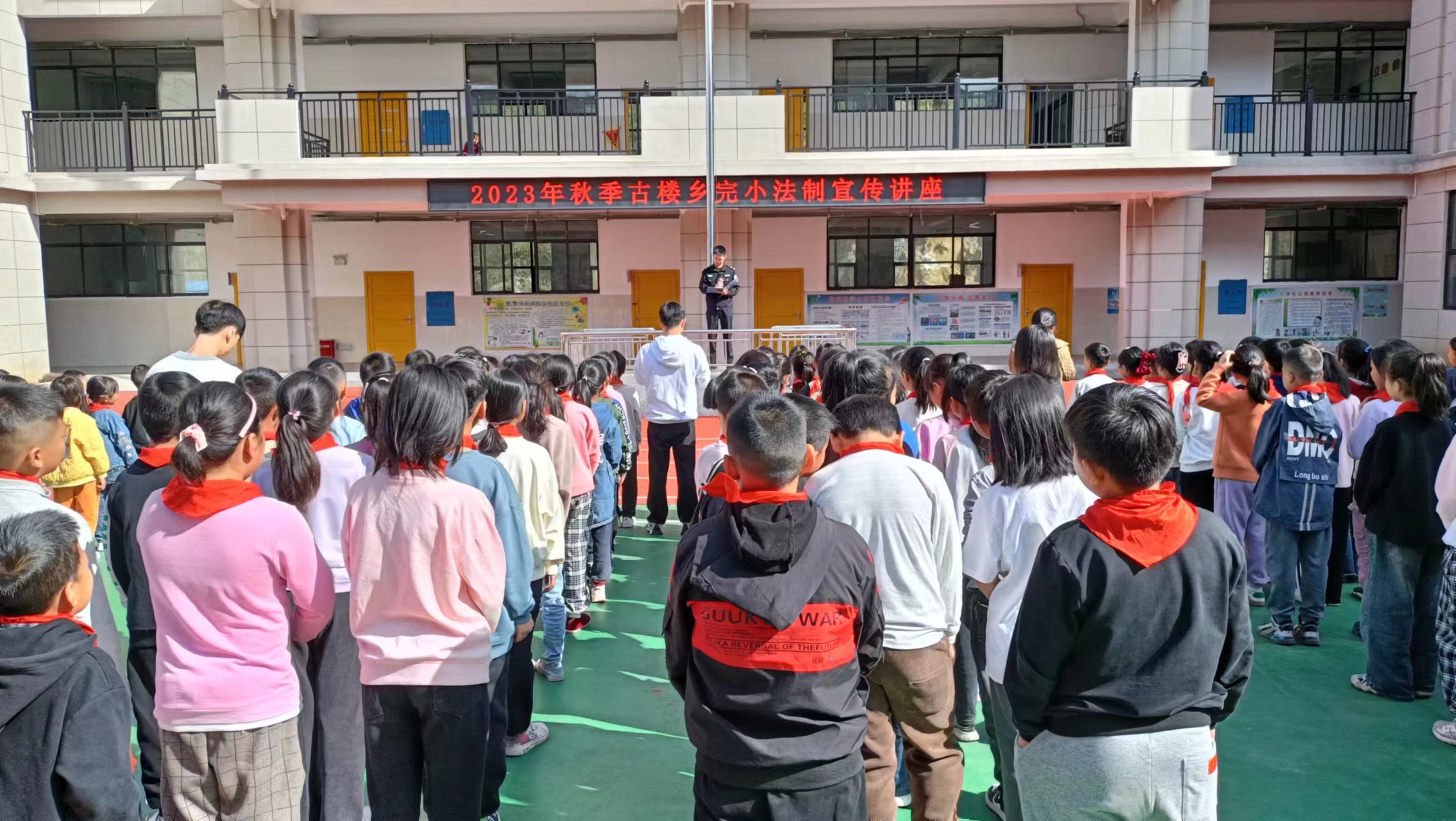 本网讯 11月6日,古楼乡完小开展2023年秋季学期法治宣传讲座活动。 活动中,古楼乡派出所民警朱俊以生动亲切的语言,结合案例和社会大数据进行分析,列举贴近学生的故事,深入浅出地向同学们讲述了关于未成年人犯罪、未成年人九种不良行为、校园欺凌、防性侵、防网络电信诈骗、道路交通安全、禁毒、自我保护的相关法律知识,引导大家养成学法、守法、用法的意识,自觉抵制违法犯罪行为。鼓励学生发现违法犯罪行为要及时报告老师或者拨打110,让大家共同携手营造一个和谐、文明、安全的学习环境。 该校安全副校长苏小英就此次活动的开展作了重要讲话,他勉励同学们要从现在做起,在努力学习文化知识的同时,也要努力学习法律知识。树立法治意识,做法律的敬畏者、尊崇者、捍卫者,学会用法律保护自己。希望同学们志存高远,踔厉奋发,勇毅前行,不负韶华。(通讯员:周文斌)