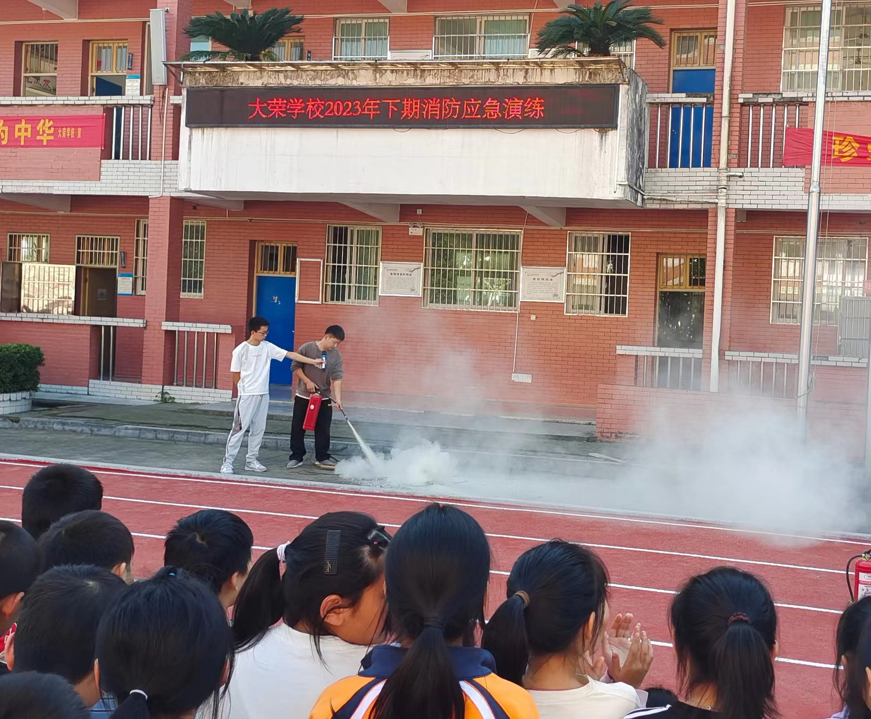 本网讯 10月31日,长塘镇大荣学校举行消防应急演练活动。 随着警报声响起,消防安全演练活动正式开始。全体师生按照学校演练方案,各就各位,严阵以待。各班主任沉着冷静地指挥学生捂住口鼻,沿指定路线低头弯腰,快速有序撤离。随后,各班清点人数,并报告演习情况。整个演练过程耗时1分52秒,达到预期目标。 演练结束后,政教主任吴开亮就如何在发生火灾时进行自救逃生和预防火灾发生等相关知识进行宣传教育,普及了遇到火灾作为小学生应该如何做等知识。并给全体师生演示了正确使用灭火器灭火的方法与步骤。 校长刘娇再次强调本次安全教育及逃生演练的重要性和必要性,希望每位学生做好自我管理,有防患于未“燃”的安全意识,养成良好的安全习惯。