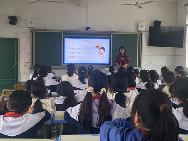 本网讯 10月27日,上午第三,四节课,江南镇洞市完小心理辅导教师刘紫施分别为五、六年级的女生开展了一场以《青春安全我保护》为主题的女生青春期心理生理健康知识讲座。 刘老师主要围绕“我从哪里来”“男孩女孩有什么不同”“怎样爱护你的身体”,针对青春期心理、生理发育特点、隐私部位的保护等进行讲解。她从科学的角度,细致地讲解了女生进入青春期后的身体变化,从神秘的身体信号、月经周期和变化、经期护理秘籍等方面,为同学们揭开了青春期的神秘面纱。她亲切的话语、图文并茂的演示,使女生们逐渐消除了害羞情绪,从而客观地面对青春期的生理特点,悦纳自己,并懂得如何爱护自己的身体。紧接着,刘老师引导学生学会保护自己的身体隐私,遵循“NOT”原则,同时也要学会尊重别人的身体隐私。 花开有时,青春有约。本次讲座同学们收获满满,帮助解决了自己关于青春期的疑惑,也让她们学会了怎样更好地爱护、保护自己,促进花季女孩健康成长。(通讯员 刘紫施)