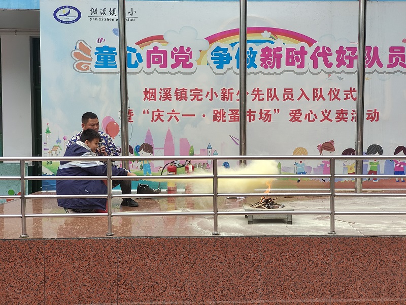 本网讯 10月25日上午,烟溪镇完小开展“正确使用灭火器”教学实践活动。 安全专干邓吉贺给学生讲解消防安全的重要性,当发生火灾时,如果发现火势并不大,且尚未对人造成很大威胁时,当周围有足够的消防器材,如灭火器、消防栓等,应奋力将小火控制、扑灭;千万不要惊慌失措地乱叫乱窜,置小火于不顾而酿成大灾。接着,为大家示范灭火器的使用方法:人处上风口,首先一只手握住喷筒把手,另一只手拔去保险销,握住软管,压下把手,对准火源根部灭火。 讲解结束后,邓吉贺组织学生进行实操演练,耐心指导学生如何正确使用灭火器,指正学生在使用灭火器时出现的错误操作,直到学生能正确使用灭火器。最后组织学生代表进行实操演习,使本次安全教育活动效果得到了真实体现。