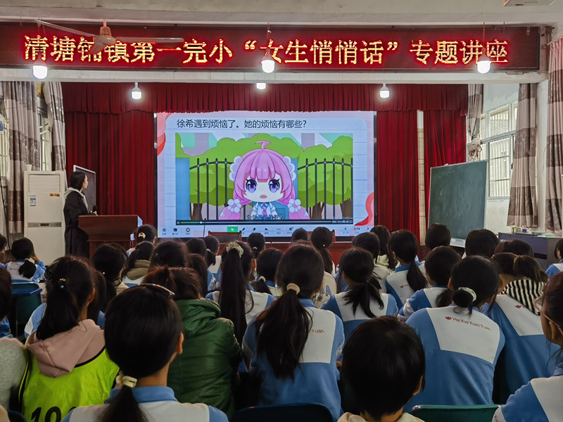 本网讯 10月16日下午,清塘铺镇第一完小多媒体教室举行了一场别开生面的“女生悄悄话”专题教育讲座。讲座由该校政教主任刘妙红主持,安全专干周意主讲,该校五、六年级两百余名女性师生参加此次活动。 讲座伊始,周意通过“徐希的烦恼”动画演示,以青春期心理生理变化作切入点,引导学生正确认识自己的身体,学会悦纳自己。再通过“我的‘禁区’我守护”的小游戏,让学生体验不同类型的身体接触,让同学们感受身体的界限,明确当有人入侵我们身体界限的时候,勇敢拒绝,学会保护自己,懂得有度交往,更加理性的对待与同性、异性的关系。 会上,周老师还引导学生们当遇到青春期困惑时,要学会向父母、老师寻求帮助,在家长的陪同下寻找答案。活动最后,同学们写下了自己青春期的困惑,投入“解忧信箱”,勇敢地寻求帮助。