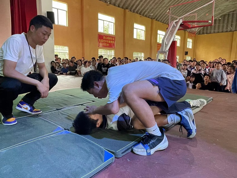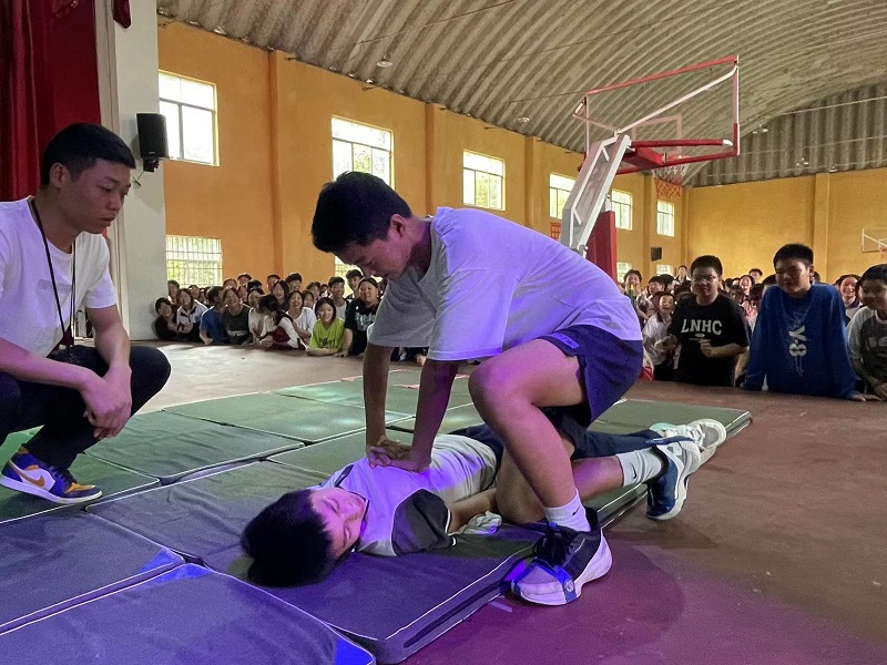 本网讯 9月27日,冷市镇中学组织了全校师生防溺水演练活动。 演练开始前,班主任组织了“珍爱生命,预防溺水”主题班会。学生对于防溺水的知识有了深刻的了解。 活动现场,安全专干黄奥魁详细讲解了发生溺水时如何正确呼救的方法和简单的救护措施等。在互动环节,黄奥魁抽查了两位学生“七不两会”防溺水知识,提醒学生要将“七不两会”知识牢记于心。然后让学生演示了胸外心脏按压和人工呼吸。这使同学们掌握了落水自救的常识,树牢了安全防护意识。