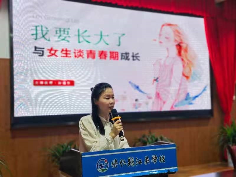 本网讯 9月23日下午,安化县江英学校初中部在多功能报告厅开展七年级女生青春期心理健康知识讲座活动,学校领导、老师和全体七年级女生参加。 初中部校长戴思妹以《我要长大了,与女生谈青春期成长》为题,详细解读了女生所必须具备的四个能力,即“自我保护、自我肯定、自我要求和自我调节”。她希望女生们在与人交往时,不卑不亢,落落大方,不拘束,流露出一种自然洒脱之美。 学生处主任孙柏林讲解了青春期是女生在生理、心理上急剧变化的关键时期,身体上的变化会给女生带来许多的困惑与烦恼。并呼吁女生们——“做快乐女生,从心开始”。 女生们纷纷感言,如果在学习和生活中遇到挫折时,不要将伤痕永远烙印在自己的心里,而要选择重振雄心,让生命更加美好。