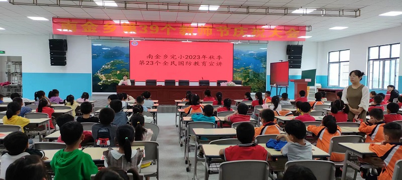 本讯网 9月13日,南金乡完小组织召开第23个全民国防教育宣讲活动。 教务主任谢泉以“强国必须强军,强军必先崇军”为主题,从“国防的基本含义”“国防的目的以及为什么要加强国防教育”和“为什么说强国必须强军,强军必须崇军”三方面为同学们上了一堂生动的国防教育课,深入浅出地引领同学们了解了许多国防的知识,使同学们认识到国防的重要性,提升了同学们的国防意识,让在座的每一个同学都深深感受到祖国的地大物博,祖国领土的神圣不可侵犯。 “国无防不立,民无兵不安”。国泰才能民安,今天的学生无疑是明天国防建设中的中坚力量。此次国防教育活动,进一步增强了学生的思想政治觉悟、国防观念和国家安全意识,激励广大学生从小培养立志报国,长大从军的爱国之心,全面激发全体师生关心和支持国防建设的责任感和使命感。
