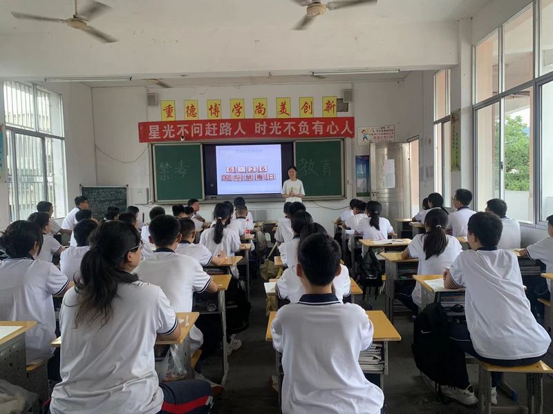 各班班主任利用ppt,从国际禁毒日的由来讲起,向学生介绍了什么是毒品以及其种类,运用大量数据和悲惨的故事,列举出毒品的巨大危害,警醒同学们要远离毒品,珍爱生命。在剖析导致吸毒的原因时,提醒同学们要树立正确的人生观,提升禁毒意识,提高拒毒的防御能力和自觉性。