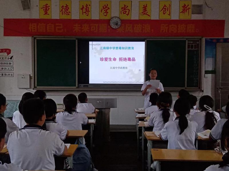 本网讯 9月2日,江南镇中学举行“珍爱生命 拒绝毒品”主题班会。