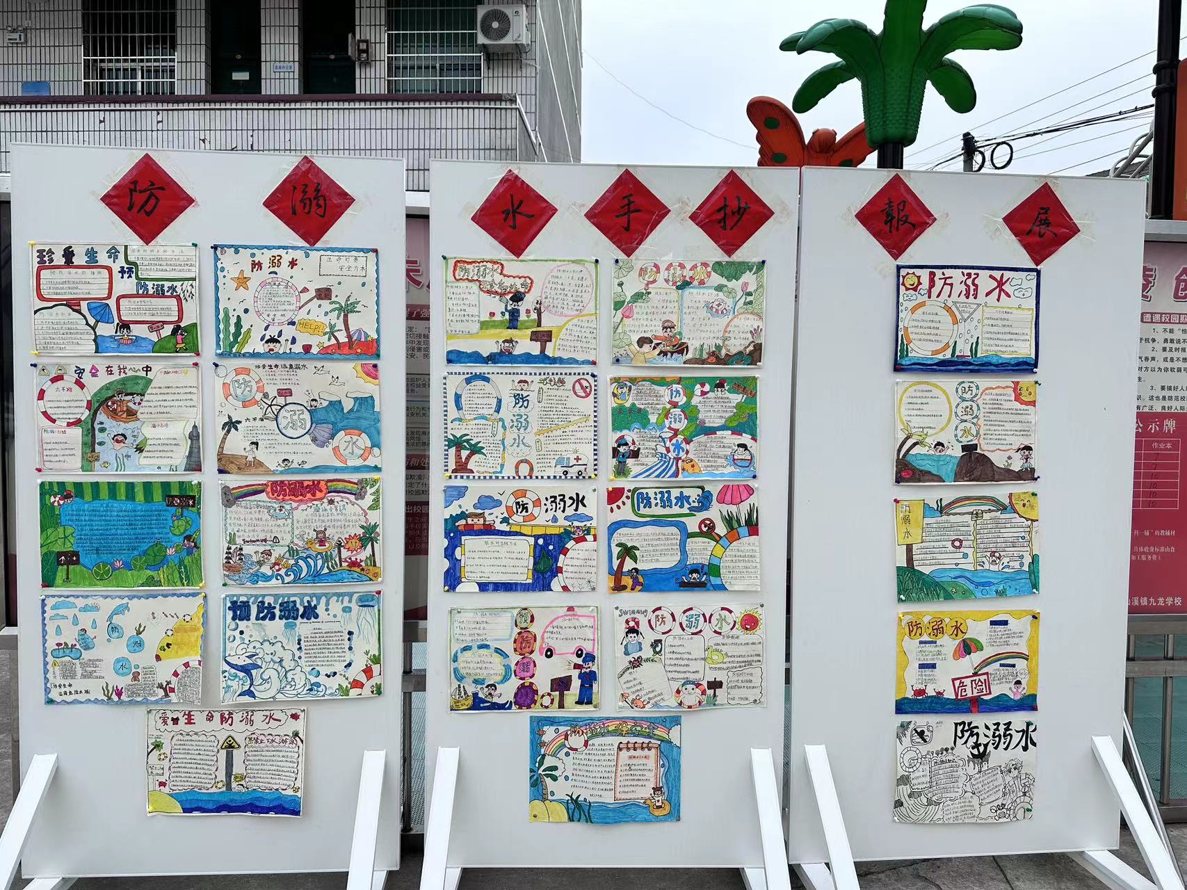 本网讯 6月16日,仙溪镇九龙学校在党建引领下进行防溺水手抄报绘画展。