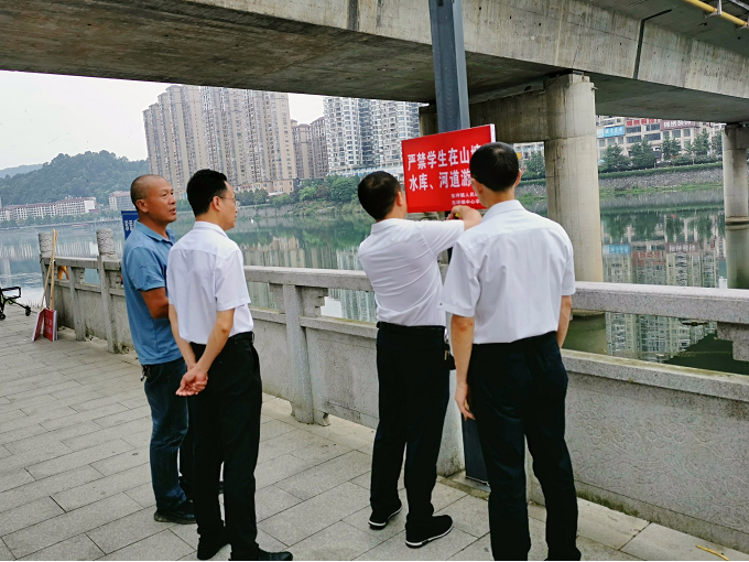 校长张密田带队,对学校辖区内的水域进行重点检查,巡视校园周边环境,实地检查周边是否有危险建筑物等安全隐患,查看防护栏是否牢固、警示牌是否完好,并对未设立警示牌的地方及时补充。