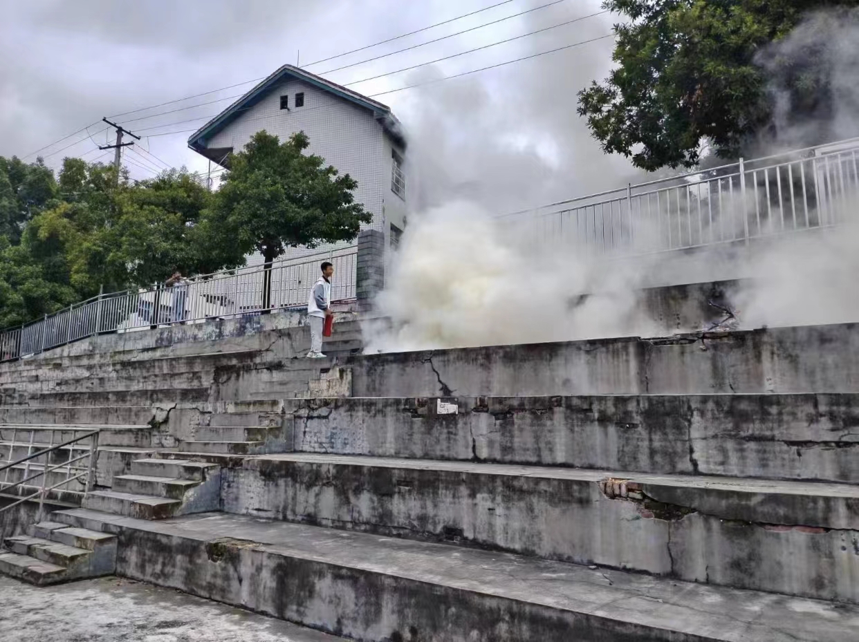 一阵急促的警报声响彻在该校的校园中。各楼层负责老师提前到位,指导楼内学生有序疏散。各班班主任迅速带领学生捂住口鼻,按照疏散要求,靠右依次下楼,仅用时3分49秒有序撤离到学校操场的安全区域,出色完成演练任务。
