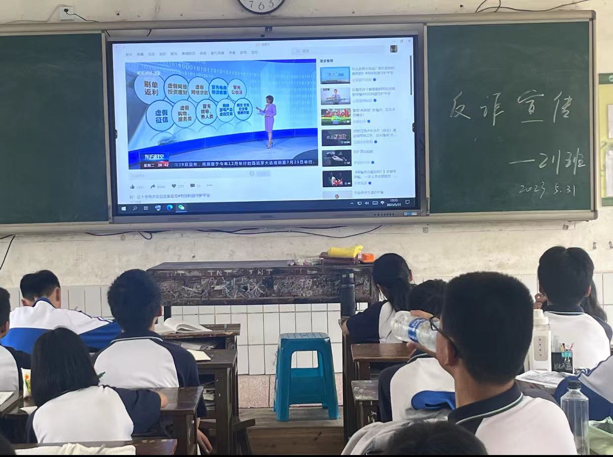 本网讯 5月31日,安化八中开展以“校园反诈,从你我做起”为主题的反诈骗主题班会。