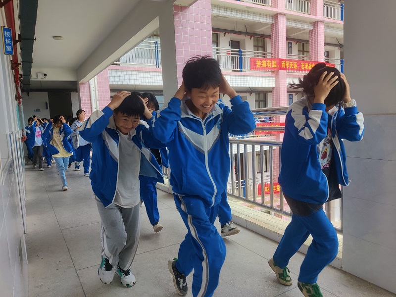 本网讯 5月12日,烟溪镇中学开展防震减灾疏散演练活动。 演练前,学校政教处制定了疏散演练方案,对全校教职工进行了分工。警报响起,同学们在老师的指挥下,按预定路线进行紧急疏散,以最快的速度从教室撤离到操场。各班老师清点学生人数,确保全员安全撤离。整个疏散演练过程紧张有序,用时1分47秒,达到了预期效果。 刘文韬同学在国旗下号召同学们不忘15年前的伤痛,感恩祖国,作为新时代少年,要珍惜眼前的点滴,好好学习,以更加坚实的步伐走向充满希望的明天! 政教主任尹文俊对防地震演练活动进行总结,强调了应急疏散注意事项,教育学生面对困难和危险时要保持冷静,临危不乱。