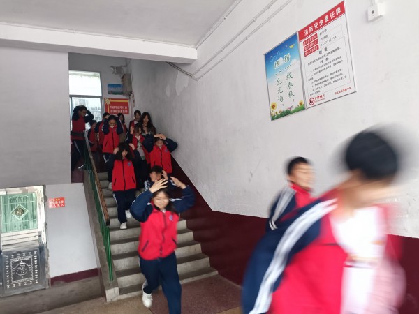 本网讯 5月12日上午,滔溪镇中学进行消防疏散演练,该校师生600余人共同参与。