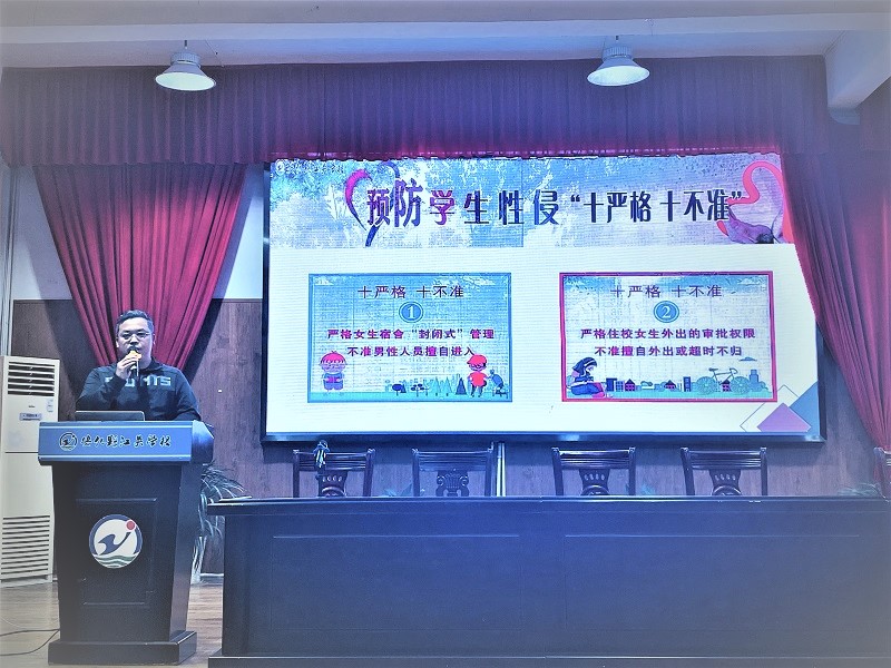 本网讯 5月10日下午,安化县江英学校小学部以“加强‘三项教育’,夯实常规督导”为题,在多功能报告厅召开5月份教师例会暨安全工作会议,学校领导和学部全体教职工参加会议。 会上,学生处主任孙柏林作《坚守安全底线,夯实常规督导》的讲话。他说:学校工作中,“安全工作,责任重于泰山”“安全事故实行一票否决制”……他重点强调了防溺水、防性侵和防欺凌“三项教育”工作的重要措施和内容,其中防溺水要做到“七不两会”;防性侵要做到“十严格十不准”;同时要求从接纳、疏导、关爱和肯定等四个方面密切关注好学生的心理健康,预防校园欺凌。并从“九个严格”上阐述了班主任与副班主任的管理重要性,对五月份“九大工作”作了具体安排和部署。 学部校长刘艳要求全体教职工要认真贯彻落实安全工作会议精神,勒紧“安全绳”,系住“安全线”,念好“安全经”,努力开创常规督导工作新局面。