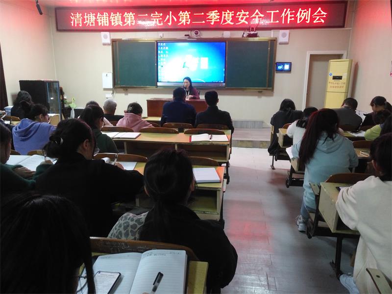 本网讯 5月8日晚,清塘铺镇第二完小全体教职工在该校多媒体室召开第二季度安全工作例会,该镇党委委员杨葱参加会议。 会议聘请杨葱同志为该校安全副校长,聘请该镇派出所副所长胡啊珊同志为法制副校长。杨葱在会上就校园安全工作作重要讲话,他重申了安全工作一票否决制,叮嘱全体教职员工严防校园安全事故发生,同时,要大力宣传各项安全法规,将安全事故杜绝于未然。 副校长龙艳萍作了第二季度安全工作报告。龙艳萍全面分析了当前面临的安全隐患:连日暴雨,河水猛涨,土质疏松等;临近毕业的学生思想复杂,学习压力增大等。她要求全体教职工坚决落实“一岗双责”制,密切关注学生动态,充分利用“1、3、5”安全教育机制即学校每天1分钟安全知识广播,班主任放学前3分钟安全常识教育,周五放学前5分钟安全意识培训,确保学生平安、健康,确保校园和谐、安宁。