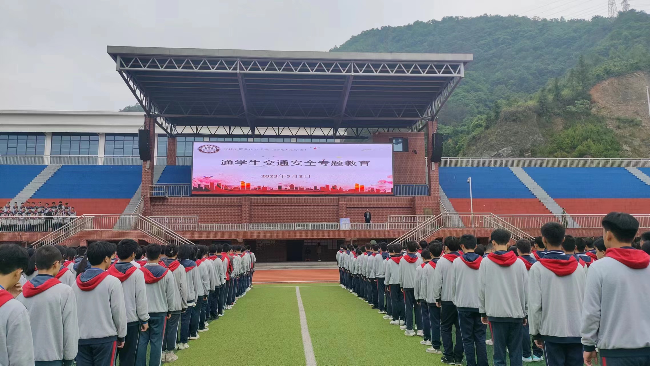 本网讯 5月8日,安化县职业中专学校(安化黑茶学校)利用周会课时间在该校田径场开展通学生安全专题教育活动,高一高二年级4200余名师生参加。 学生工作处主任罗志辉通过警示事例、交规讲解等形式给同学们上一堂生动的交通安全课程,特别叮嘱同学们放假出行时不得乘坐三无、超载车船。通过此次活动,同学们深刻认识到无牌无证驾驶、超速驾驶、超载驾驶、不文明驾驶的危害性,深刻了解到摩托车、电动车上路行驶的相关法律法规,深入领会到提高交通安全意识、规范行车行为的必要性。 此外,该校还充分利用LED显示屏、智慧黑板滚动播放交通安全提示语、警示视频,在校门内外张贴交通安全提醒,在各年级各班定期发布交通安全管理的相关通知,多角度全覆盖进行交通安全宣传,提高学生的交通安全与自我防范意识。