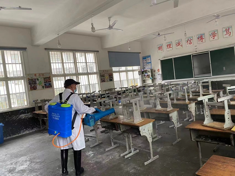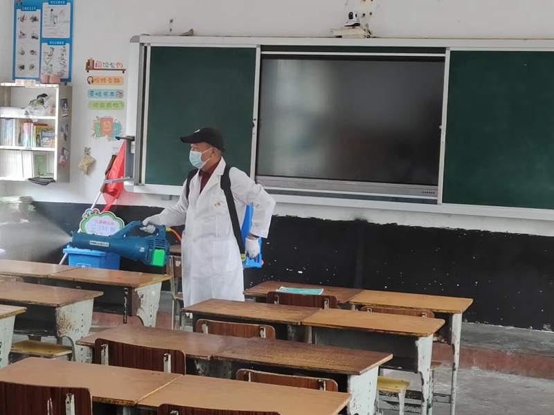 本网讯 3月27日晚,江南镇完小教师王均安背着几十斤重的消毒机,忍着刺鼻的消毒剂气味,认真专注地对校园进行消杀。 王均安严格按照操作规范进行药物喷洒,对校园、教室、食堂、活动室、教师办公室、阴沟及周边环境全方位、无死角消毒杀菌,消杀过程历时近两小时。 该校相关负责人介绍:后段将进一步强化对师生的传染病知识培训,定期组织专业人士对教室进行空气消毒,严格执行每天一小时锻炼制度,强身健体,增强抵抗力。通过系列举措,预防春季传染病,为师生安全保驾护航。 据悉,为筑牢群体免疫屏障,有效控制春季传染病在校园内的传播,该校利用微信群、黑板报、专题讲座等方式向学生及家长宣讲传染病防控知识,加强卫生督查,强化常态消毒,严格落实晨午检制度,做好因病缺勤师生追踪,做到早发现、早报告、早处置。