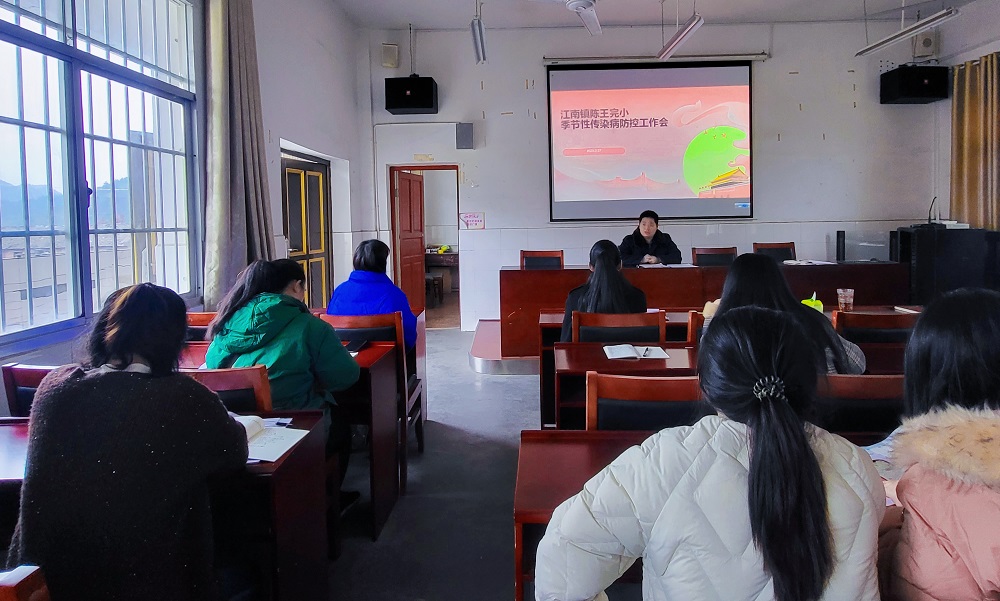 本网讯 3月27日中午,江南镇陈王完小召开全体教师季节性传染病防控工作会。 培训会上,学校安全副校长王沪传达了国家对传染病的相关政策要求和目前传染病流行的状况,就如何开展学校传染病防控工作,春季常见传染病的基本特征、传播途径和预防措施,学校传染病流行特点及原因,学校重点传染病防控措施,校园传染病报告应急处置流程及后续处置办法等内容进行了专题培训。 校长陈娜强调,全体教师要从思想上高度重视校园传染病的预防,各班级要严格落实晨午检、落实因病缺课追踪制度,按时消杀、通风换气,积极开展健康教育,让孩子养成良好的卫生习惯,确保每位学生的健康。
