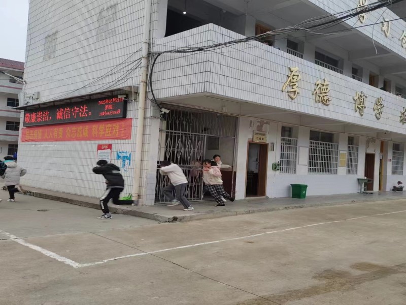 本网讯 3月21号下午,古楼乡中学举行"消防安全疏散应急演练"活动, 下午4:43分,随着紧急警报声响起,演练开始!同学们在班主任和副班主任的指挥下,按消防预案的疏散线路,捂住口鼻,小步快走,快速有序撤离下楼!全体师生在第一时间安全撤离到学校操场的安全地带。随后,各班清点人数后各班班长汇报学生人数。 据悉,活动前,学校成立了以古楼乡中学校长刘竟伟、安全副校长夏晓勇、政教主任黄珞为指挥的安全领导小组。安全领导小组周密安排、精心布置、分工明确、团结协作。各年级班主任与副班主任对学生进行消防安全和应急疏散教育,并对本班学生的逃生路线、到达的目的地及撤离方式等注意事项进行强调。