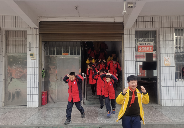 本网讯 3月10日上午,梅城镇紫云完小组织全体师生进行紧急疏散演练活动。 10时20分,随着警报声的响起,上课老师立即停止授课,转而成为教室演练负责人,打开教室大门,关闭电源,同时告知学生“地震来了,请大家不要慌,赶紧躲避”,并指挥学生双手护住头部,快速、安全、有序疏散至安全场所。 本次演练,一千多名师生从教室撤离到安全场所用时2分40秒。整个演练过程既紧张、激烈,又有条不紊。校长贺勇在操场对全校师生进行安全知识培训,他从三个方面讲述了防震及防踩踏的相关知识,有效提高了师生处理突发事件的能力,进一步增强师生的安全意识和自护能力。