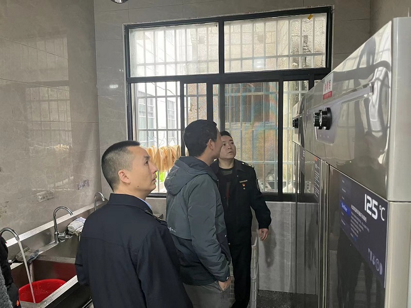 本网讯 3月8日,南金乡市场监督管理所所长刘欧一行,到南金乡完小进行食品安全检查。 督查组认真查阅了食堂安全卫生管理各项制度、供货合同、采购索证、食品留样记录、餐具清洗消毒记录等资料,并现场查看了操作间、食品仓库和消毒设备等。检查人员对学校食堂各项工作给予了充分肯定,并对不足之处提出了合理化的建议。督查组要求学校管理人员认真开展食品安全主体责任落实情况自查,主动排查自身风险隐患,强化日常管理,严防来源不明、不符合质量卫生要求的食品流向学校食堂和学生餐桌。 食品安全是学校工作的重中之重,学校将以此次检查为契机,进一步提升食堂食品安全卫生工作质量,为孩子的健康成长保驾护航!