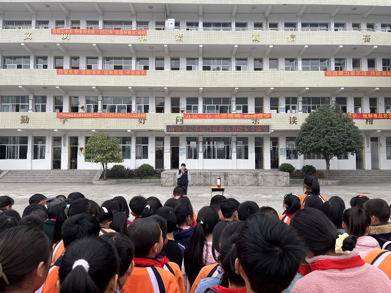 本网讯 3月7日,一阵急促的警报声拉开了南金乡完小消防应急疏散演练活动的帷幕。 上午10点10分,随着警报的响起,消防演练正式开始。全体师生按照演练要求各就各位,严阵以待。老师们沉着冷静地指挥学生沿指定路线低头弯腰快速有序撤离。学生到操场后,班主任立即清点人数,确保所有学生安全到达。整个过程仅用时57秒,既紧张又有条不紊,没有疏漏一个学生,没有出现碰撞和踩踏事件,达到了预期效果。 据悉,政教主任刘婉对整个演练进行了精心策划和严密组织,制定消防演练活动实施方案,成立了疏散演练领导小组,做到分工明确,责任到人。 演练结束后,刘婉对本次演练进行总结点评,为大家科普消防安全知识,讲解如何正确使用灭火器及自救方法。