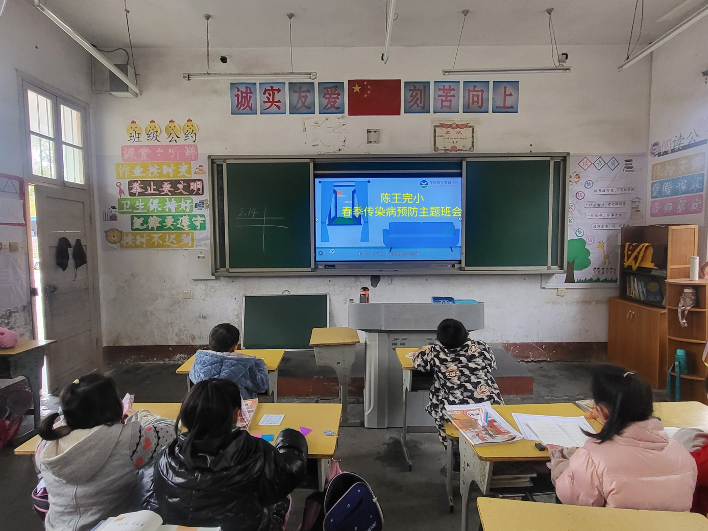 本网讯 2月14日上午,江南镇陈王完小开展了春季传染病预防主题班会。 班会课上,各班班主任通过PPT、视频等形式向同学们详细讲解了春天为什么会传染病流行、传染病流行的主要特征、春季常见传染病及其预防措施等。重点介绍了春季多发传染病的类型、症状、传播途径,尤其是对春季流行性感冒、水痘、手足口病、诺如病毒等各类传染性疾病的危害、症状、传播途径、防控手段等有关知识进行了全面细致地讲解。 同时提醒同学们在日常生活中要注意饮食卫生,养成良好的饮食习惯;加强室内通风、换气;保持个人卫生;多参加各种体育活动,增强体质,保证充足的休息等,可以提高身体抵抗力和免疫力;要求一旦发现传染病或疑似传染的学生,应立即报告,及时就医。 此次主题班会,让学生对春季流行疾病有了全面认识,增强了关注健康的意识,促使学生养成良好的卫生习惯,为学校协调有序开展各项工作提供了有力保障。