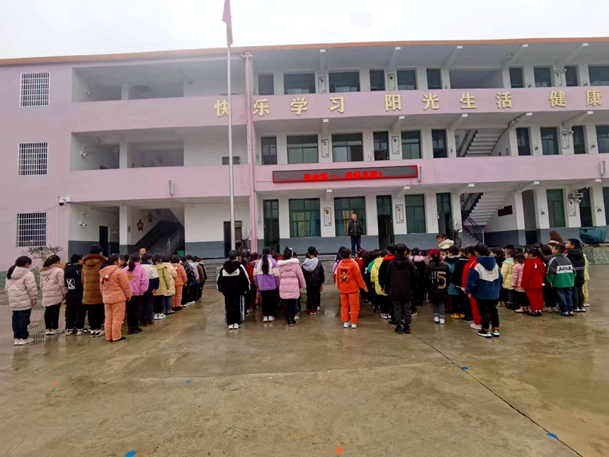 本网讯 2月7日上午,渠江镇晏家学校举行新学期首次升旗仪式,并采取国旗下讲话的形式强调校园安全,落实教育局“开学安全第一课”。