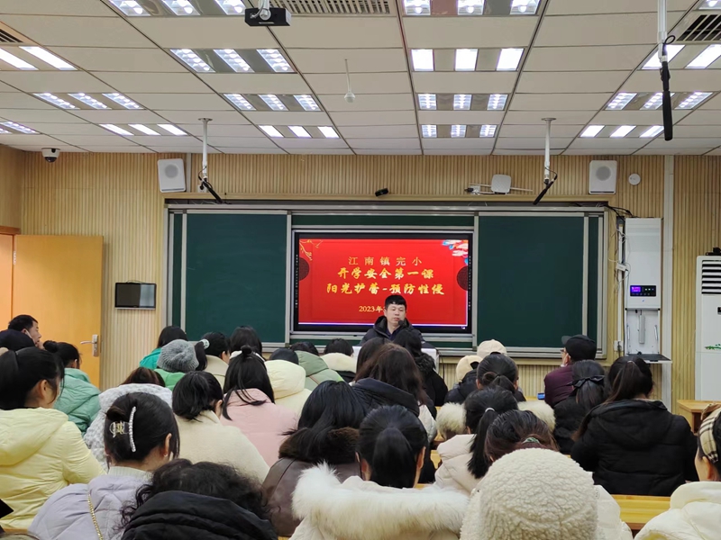本网讯 2月6日,江南镇完小组织全体教职工观看“阳光护蕾”大型警示教育主题片——预防性侵警钟长鸣 零容忍同心护蕾。活动由学校分管安全副校长王立祥主持。