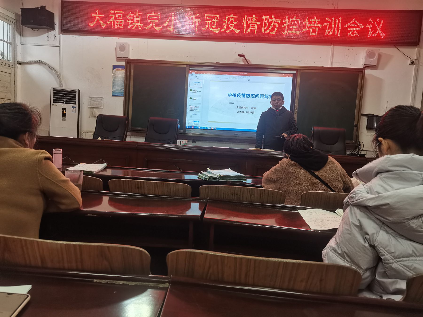 本网讯 11月29日中午,大福镇完小召开疫情防控专题培训会,传达上级有关要求,安排部署近期疫情防控工作。 会上政教处主任黄剑从学校常见传染病有哪些、学校新冠肺炎防控的重要文件有哪些、晨午检与因病缺勤跟踪如何落实、卫生消毒如何进行、个人防护应注意哪些方面后等十二个方面对全体教师进行了系统的培训。并指出,要认真落实全国新冠肺炎疫情防控工作电视电话会议精神,坚决落实进一步优化防控工作的二十条措施,切实把思想和行动统一到党中央决策部署上来,坚定不移坚持人民至上、生命至上,最大程度保护人民生命安全和身体健康,最大限度减少疫情对经济社会发展的影响。 校长林颖要求,全体教师要做到思想上高度重视,坚持不松懈、不麻痹,切实压实责任,密切联系师生,管好门、管住人、做好事,坚决守住校园安全;要补齐短板,引导师生做好个人防护,严格按照新型冠状病毒肺炎防控方案(第九版)要求,巩固来之不易的安全态势。 |