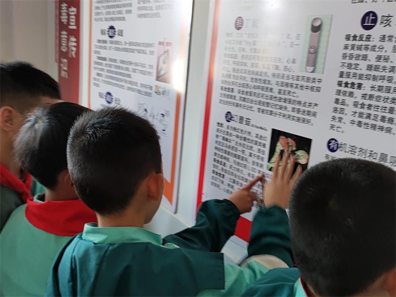 本网讯 11月14日上午,清塘铺镇第二完小安全专干袁炯、少先大队辅导员刘晓如、中队辅导员罗赛飞组织该校四年级1906中队的少先队员来到清塘铺镇中学禁毒教育室,认真学习了禁毒领域的相关知识。 清塘铺镇中学政教处主任周伟宏结合图片资料,从林则徐虎门销烟、鸦片战争,到近期关于禁毒工作的有关文件,向大家讲述了毒品曾经给中国人民带来的深沉灾难以及中华民族反毒品反侵略的波澜壮阔的斗争史,让孩子们感受了与毒品犯罪作斗争的深远意义。 讲解员熊婧向大家详细介绍了各种各样的新型毒品及吸食毒品对人体的危害,提醒孩子们不能随意接受别人的赠品,谨防毒品犯罪分子设置的陷阱,谨防自己不知不觉被新型毒品黑手拉下水。熊老师字字句句、饱含关爱与期待,也为少先队员们敲响了禁毒的警钟。 少先队员们拿起禁毒室陈列的书籍认真地翻阅,一幅幅吸食毒品的凄惨画面,一段段触目惊心的文字,让少先队员们全面而真切地认识到了毒品的狰狞面目。 此次参观活动极大地激发了少先队员们抵制毒品,远离毒品的决心,也吸引了更多的少先队员加入到禁毒宣传工作中来。(通讯员:吴碧龙 刘晓如)