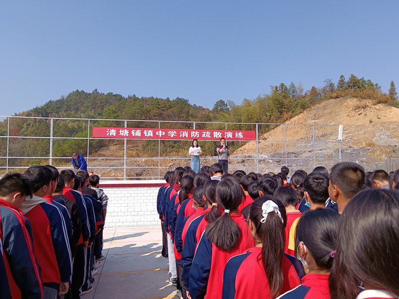 本网讯 11月9日10时15分,随着一阵尖锐、刺耳的警报声骤然响起,清塘铺镇中学消防应急疏散演练正式拉开序幕。 同学们在班主任和任课老师的组织下,用手帕、毛巾等掩住口鼻,俯下身子,沿着学校指定的疏散路线,快速有序地撤离至学校大操场。到达安全区域后,各班班长迅速清点人数,并将结果向现场总指挥报告。集 刘鹏飞老师给同学们详细讲解了灭火器的使用方法——提、拔、握、压,并在现场进行了灭火演示,还让学生代表进行实际操作。 政教处干事熊婧总结了同学们在模拟逃生过程中存在的问题,强调了掌握正确逃生方法的重要性。 政教处主任周伟宏要求,全体师生务必提高安全防范意识,认真学好安全自救知识,熟练掌握自护自救技能,做到平时不玩火、不玩电,坚决防止安全事故发生,共创平安校园。